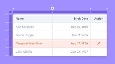 Our new Table offers a completely visual editing experience. Mock up complex data grids quickly and intuitively without any quirky syntax.