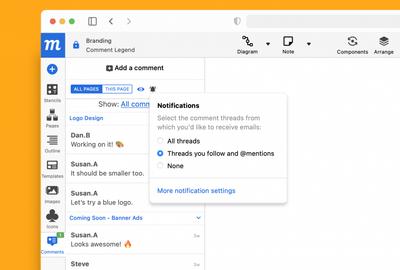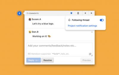 If you want control over the notifications you’ll get from a project, just select from ‘All’, ‘None’, or ‘Threads you follow and specific @mentions’ within that project’s Comment Panel.