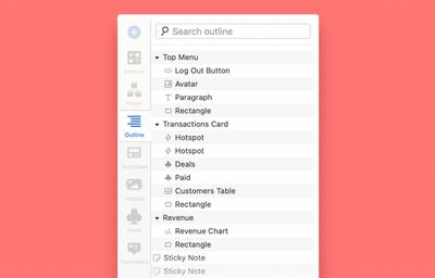 The Outline Panel is a great place to search, identify, or rename objects on the page. It also lets you quickly rearrange layering, lock and unlock, toggle visibility, and delete both objects and groups.