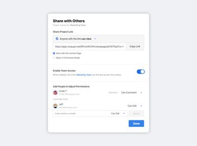 For instance, within Moqups, a team’s Admin and Managers can invite members, assign roles, and set access.