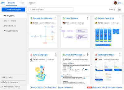Managing Projects, Teams and Accounts just got easier. The new Dashboard separates these three management functions from the Editor’s UI – and unifies them in a single space with its own URL: https://my.moqups.com.